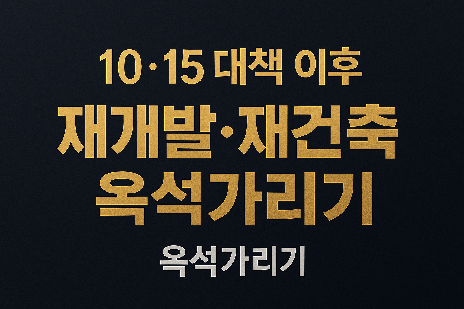 10·15 부동산대책은 재개발·재건축 시장의 지형을 바꿔놓았다. 사업성·입지·환금성을 기준으로 생존 가능 단지와 리스크 권역을 전문가 시각으로 정리합니다.